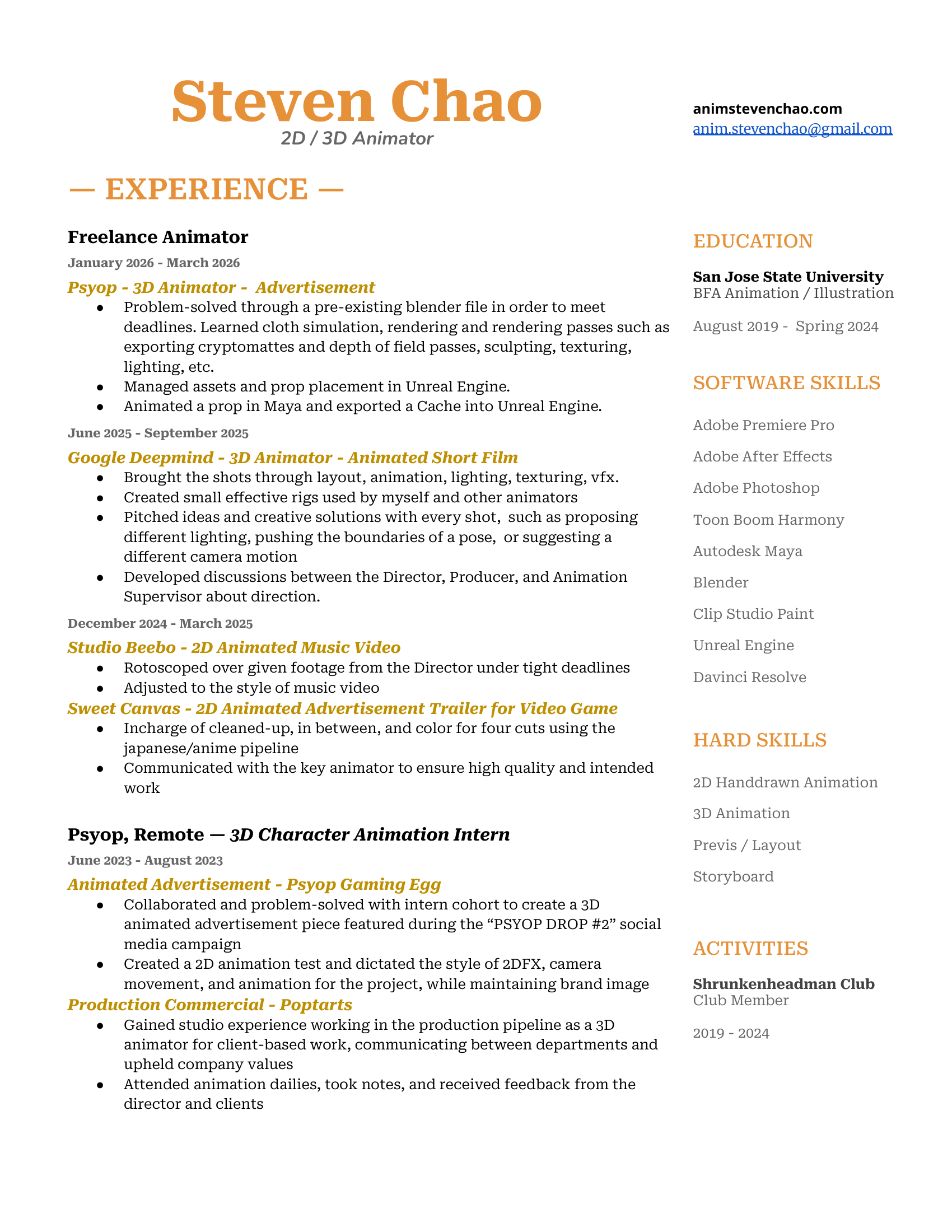 If you would like to contact me, please reach out at anim.stevenchao@gmail.com